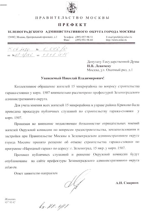 Строительство в Зеленограде "Антинародного гаража" отменено